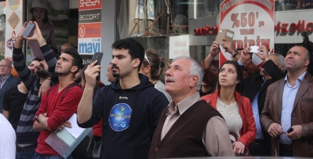 İntihar girişimini film gibi izlemeye başlayan vatandaşlar, olayı cep telefonlarıyla görüntülemek için adeta birbiriyle yarıştı.