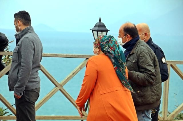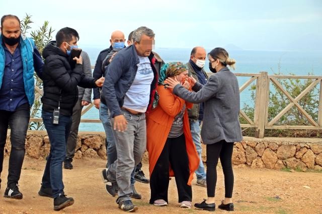 Muharrem A.'nın yemeği kabul etmeyip bulunduğu yerden ayrılmaması üzerine olay yerine eşi ve çocukları getirildi. Polis ekipleri çocukları falez kısmına yaklaştırmazken, Muharrem A.'nın eşi, uçurum kenarına gözyaşı dökerek geldi.