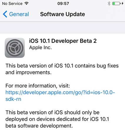 Eğer geliştirici hesabınız varsa ve iOS 10.1 beta 1 kullanıyorsanız Ayarlar>Genel>Yazılım Güncelleme bölümünden güncellemeyi yükleyebilirsiniz.