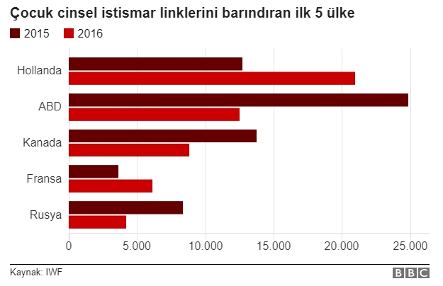 İngiltere merkezli İnternet İzleme Vakfı'nın (IWF) 2016 raporuna göre dünya çapındaki çocuk istismar içeriklerinin yüzde 60'ı Avrupa'dan geliyor.