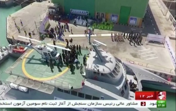 İran'ın yeni ürettiği ve tamamı yerli yapım olan yüksek hızlı savaş gemisini sulara indi. Geminin üzerine asılan pankarttaki sözler dikkat çekti.