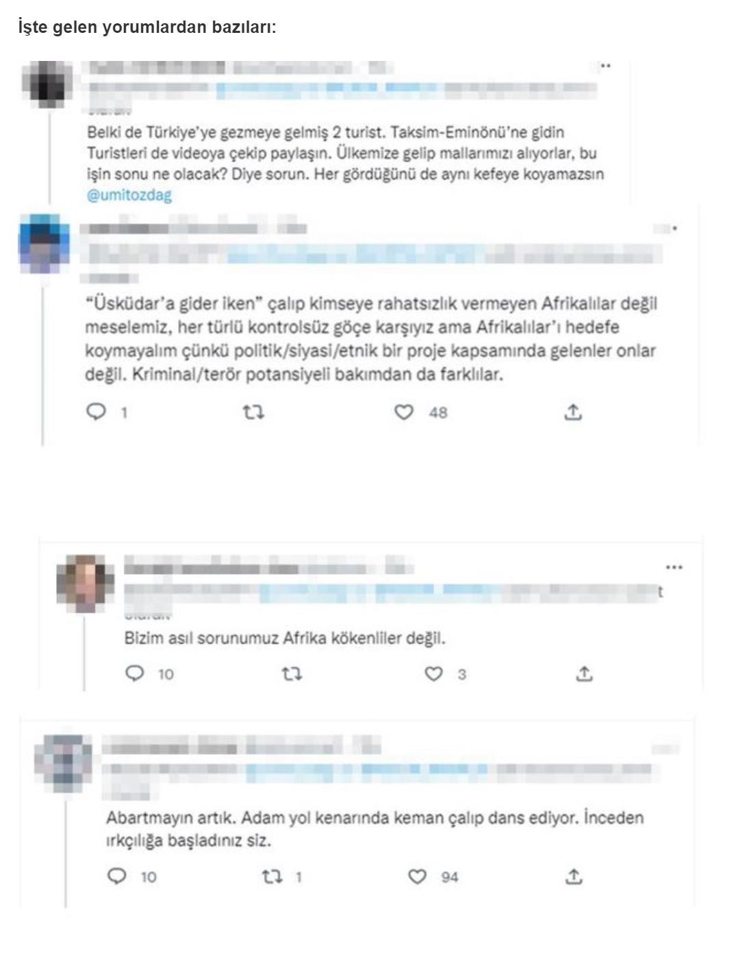 Zafer Partisi Hatay İl Başkanlığı, Twitter üzerinden sokakta "Üsküdar'a Giderken" şarkısını çalan siyahileri paylaşarak "Afrika, Orta Doğu ve Asya'dan akın akın Türkiye'ye gelip ekmeğimize, işimize ve aşımıza ortak oluyorlar. Bu işin sonu nereye varacak?" ifadelerini kullandı. Partinin bu paylaşımı kısa sürede tepki çekerken kullanıcılar düşülen nota çok sert çıktı.