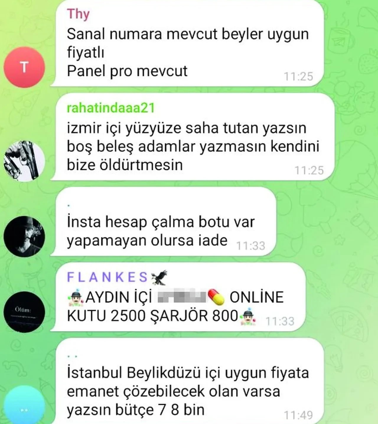 Sosyal medyada ortaya çıkanlar dehşete düşürmeye devam ediyor. Türkiye'de çeteleşme ve organize suçlar sosyal medyada ticarete dönüştü. Şimdi de Telegram uygulaması üzerinden seri katilden uyuşturucu kuryelerine, insan kaçakçısından ve tetikçiye kadar bir çok suçun 'hizmet' adı altında ilana çıktığı görüldü. Ortaya çıkan sözde ilanlardaki konuşmalar ise görenleri dehşete düşürdü.
