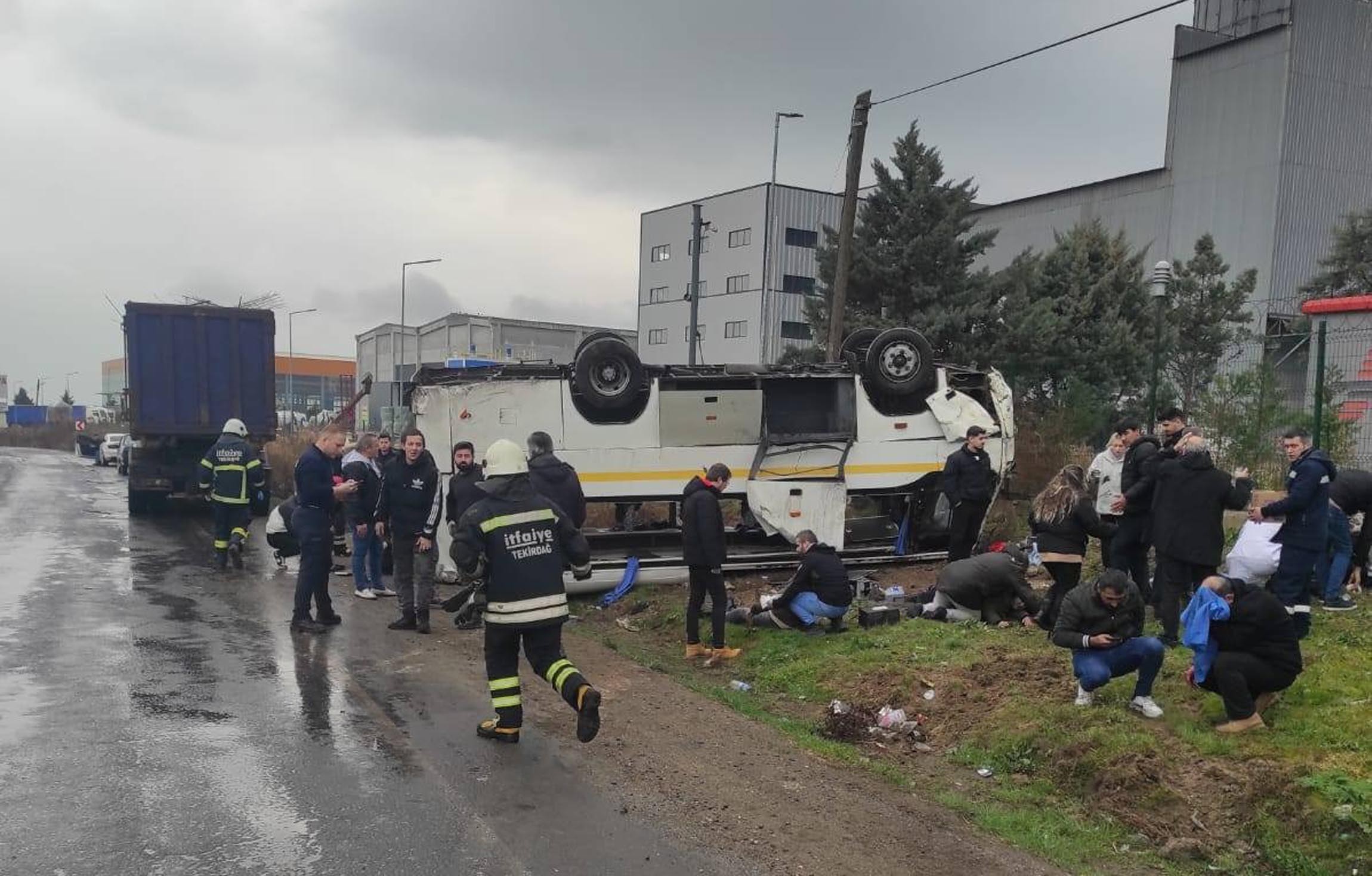 Tekirdağ’ın Muratlı ilçesinde, fabrika işçilerinin taşındığı servis midibüsünün takla atarak ters durduğu kazada 25 kişi yaralandı.