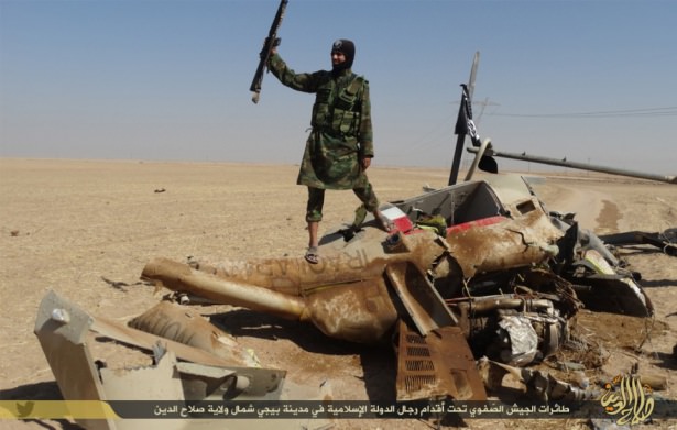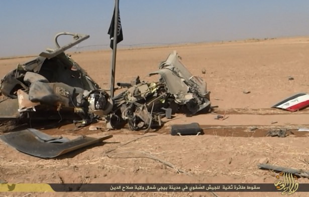 IRAK Şam İslam Devleti (IŞİD) son 48 saat içerisinde Irak'ın Selahaddin iline bağlı Beyci İlçesi'nde düşürdüğü Irak Hava Kuvvetleri'ne ait iki savaş helikopterinin fotoğraflarını yayınladı.