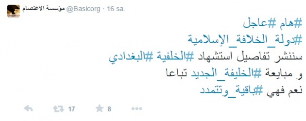 @Basicorg adlı twitter hesabı konuyla ilgili; "Ebubekir el-Bağdadi öldürülmesiyle ilgi detayları paylaşacağız ve kısa sürede İslam Devleti için yeni bir hilafet adayı belirleyeceğiz" açıklaması yaptı.