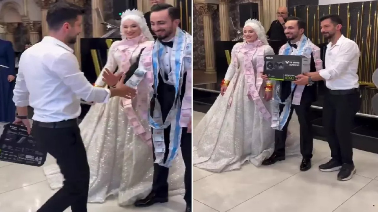 Piyasa değeri 120 bin TL’ye kadar çıkan, oyun ve tasarım dünyasının en gözde donanımlarından biri olan ekran kartının düğünde takı olarak sunulması, “İşin artık iyice suyu çıktı” yorumlarını da beraberinde getirdi.