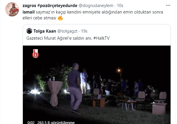Programın konuklarından İsmail Saymaz, "Kaba kuvvet karşısında geri adım atmayacağımızı az önce de gördüler." diyerek iddialı cümleler kurmuştu. Ortaya çıkan görüntülerde İsmail Saymaz'ın arkasına bakmadan kaçtığı gözlendi.