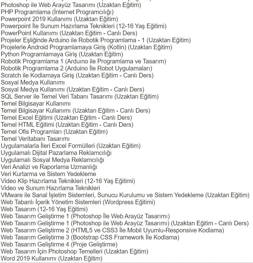 İSMEK bünyesinde uzaktan eğitim, canlı ders seçenekleri de dahil olmak üzere çeşitli alanlarda eğitimler verilmektedir. İşte İSMEK programlarından bazıları...