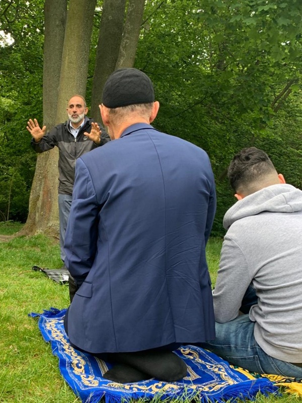 Özel bir insiyatif 30 kişi bir ara gelerek Berlin'in merkezinde Hasenheide parkında bayram namazı gerçekleştirdi.