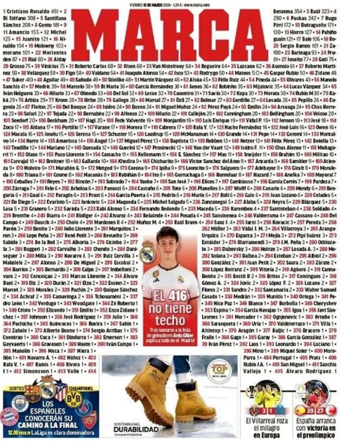 Marca, Real Madrid formasıyla en çok gol atan futbolcuları sıraladı. Arda Güler, bu sıralamada 416. sırada yer aldı ve gazetenin manşetine çıktı.