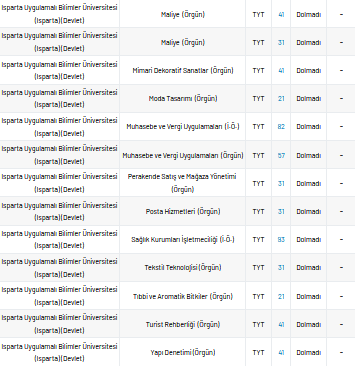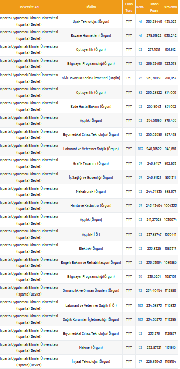 Isparta Uygulamalı Bilimler Üniversitesi 2 yıllık taban puanları 2021, yüzdelik dilimleri ve kontenjan sayıları kaçtır?