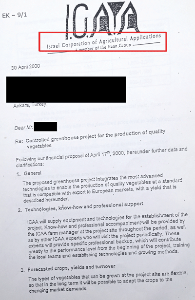 Bu kapsamda Ankara bürokrasisi, yerel yönetimler, bir aracı firma ve bunların üzerinden birtakım tarımsal çiftçi örgütleriyle kontak kuran İsraillilerin, göz boyama amacıyla bölgedeki irtibatlarına bir ‘Sera Projesi’ sundukları; ancak sahadaki çalışmaların ardından bu proje hayata geçirilemeden İsraillilerin ortadan kaybolduğu belirlendi.