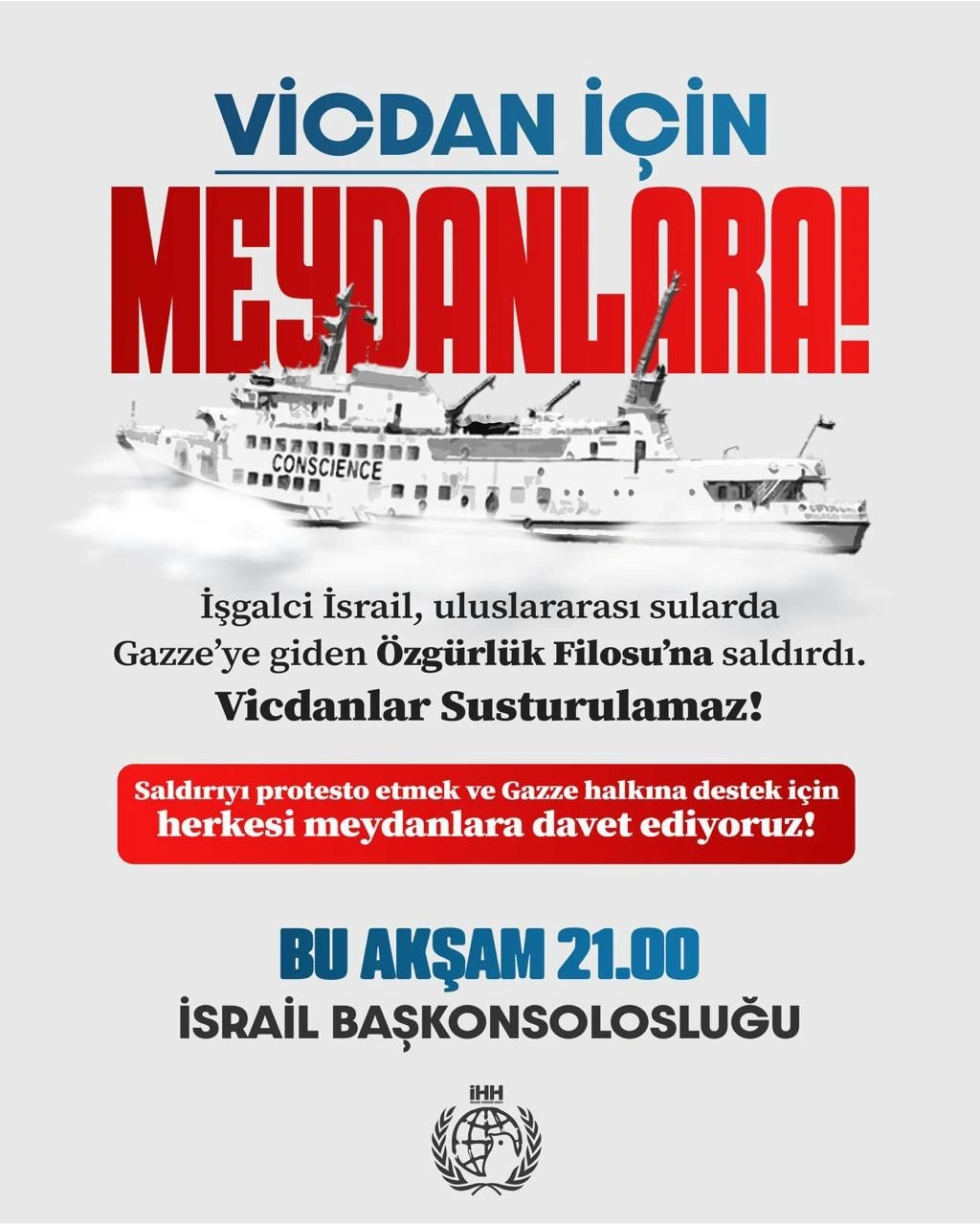 İşgalci İsrail’in uluslararası sularda Özgürlük Filosu’na yaptığı saldırı ve Gazze’de sürdürdüğü soykırım nedeniyle bu akşam İstanbul’da büyük bir protesto düzenlenecek. Levent’teki İsrail Başkonsolosluğu önünde saat 21.00’de gerçekleştirilecek eylemde binlerce kişi Gazze için tek yürek olacak.