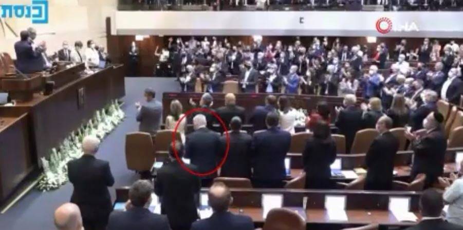 İsrail Parlamentosunda (Knesset) yapılan törende Netenyahu'nun, görevi devreden eski Cumhurbaşkanı Reuven Rivlin'i alkışlamadığı anlar dikkat çekti.