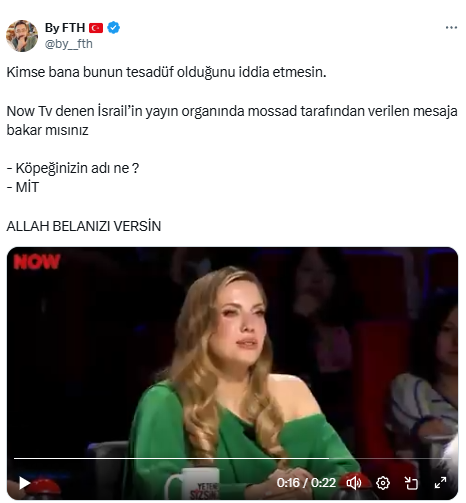 Türkiye’de yayın yapan İsrail’in yayın organı NOW TV’de yayınlanan Yetenek Sizsiniz programında bir skandala imza atıldı. Köpeğiyle sahneye gelen bir yarışmacı köpeğin adının MİT olduğunu söyledi.