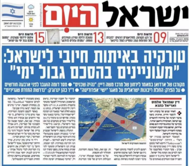 Netanyahu’ya yakınlığıyla bilinen Hayom gazetesi, Yaycı’nın haritasını manşetten verip, Medsteam için en uygun adresin Türkiye olduğunu savundu.