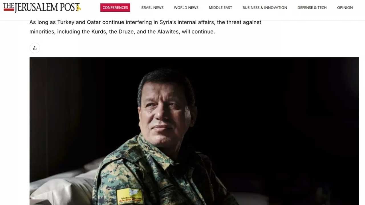 srail'in önde gelen gazetelerinden Jerusalem Post'ta yer alan analizde, Şam'daki yeni yönetimin Türkiye ve Katar tarafından yönlendirildiği ifade edilerek, İsrail'e Suriye'deki terör örgütü PKK/PYD gruplarıyla ittifakını derinleştirme çağrısı yapıldı.,