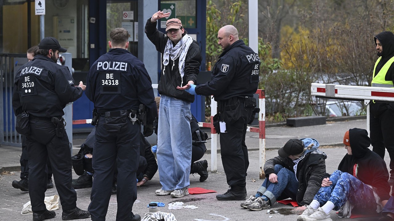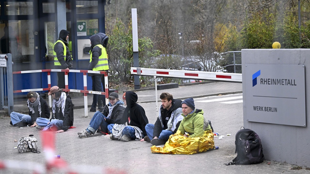 İsrail’e silah üreten Alman Rheinmetall şirketi, başkent Berlin’de protesto edildi. "Soykırıma Karşı Barışçıl Mücadele" grubu üyesi aktivistler Berlin’in Wedding semtindeki Rheinmetall tesisinin girişinde kapatarak ‘Soykırımı durdurun’, ‘Almanya finanse ediyor, İsrail bombalıyor" sloganları attı.