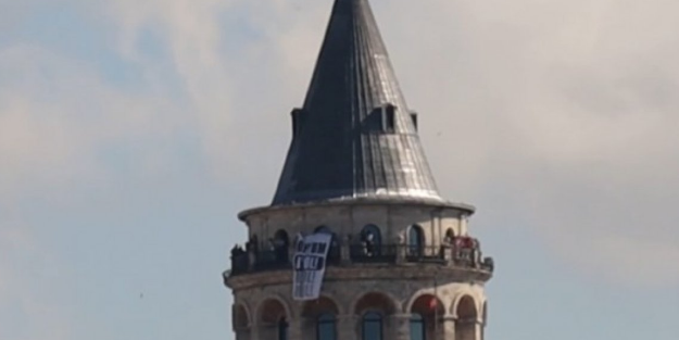 DEM Parti İstanbul milletvekilleri, Galata Kulesi'ne "Kayyum defol" pankartı asarak, Hakkari Belediyesi'ne kayyım atanmasını protesto etti. Milletvekilleri daha önce boğaz köprüsüne de pankart asmıştı.