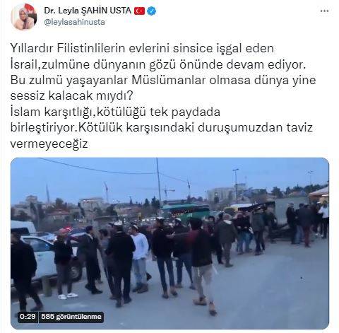 İsrail zulmüne dikkat çeken AK Parti Genel Başkan Yardımcısı Leyla Şahin Usta, resmi sosyal medya hesabından paylaşımda bulundu.