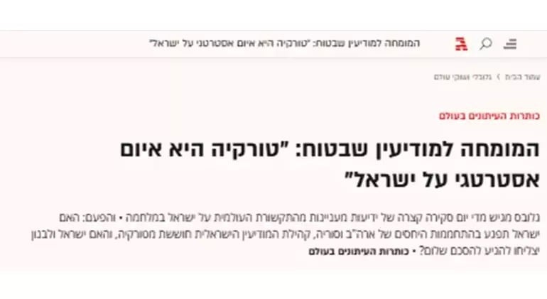 İsrail’in önde gelen gazetelerinden Globes’ta yayımlanan haberde, Tel Aviv Üniversitesi’nden istihbarat uzmanı Dr. Yaakov Falkov, Türkiye’nin Orta Doğu’daki etkisinin son yıllarda gözle görülür biçimde arttığını belirterek, bu durumun İsrail için “ciddi bir stratejik tehdit” haline geldiğini ifade etti.