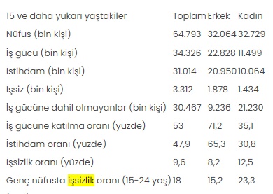 Söz konusu ayda 15-24 yaş grubunu kapsayan genç nüfusta işsizlik oranı, bir önceki aya göre 0,8 puanlık azalışla yüzde 18 oldu.