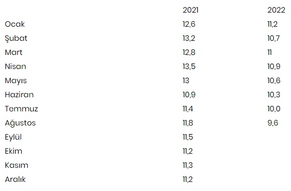 TÜİK verilerine göre, 2021-2022 dönemi mevsim etkilerinden arındırılmış işsizlik oranları şöyle: