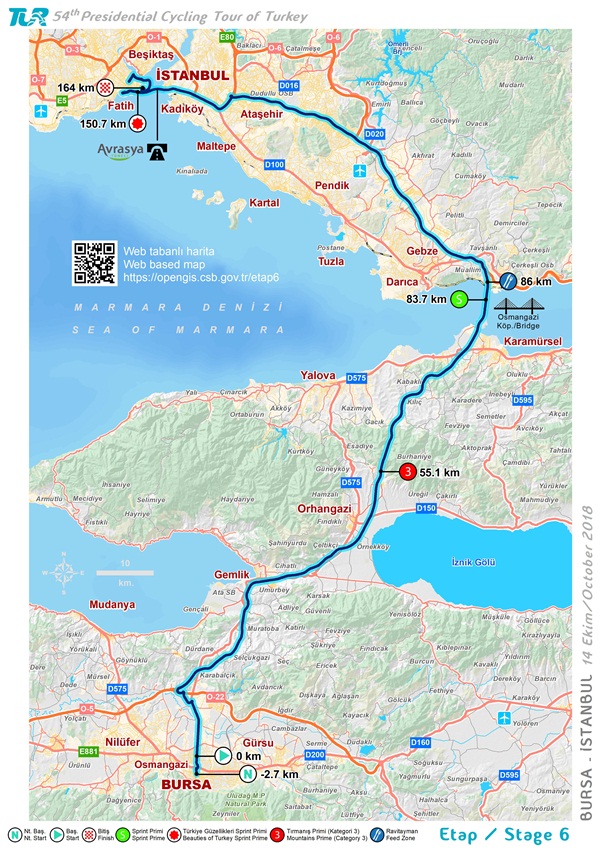 İç Anadolu’dan start alan TUR 2018 daha sonra Akdeniz ve Ege sahillerinden geçiyor ve Marmara’ya ulaşıyor. 1. Etap Konya-Konya (9 Ekim), 2. etap Alanya-Antalya (10 Ekim), 3. etap Fethiye – Marmaris (11 Ekim) arasında yaşandı. 12 Ekim’de Marmaris-Selçuk arasında düzenlenen 4.etap, Meryem Ana Evi’nin yer aldığı Bülbül Dağı tırmanışıyla son bulacak. 13 Ekim’de Selçuk’tan başlayacak 5. Etap ise Manisa’da tamamlanacak. Son etap ise 14 Ekim Pazar günü Bursa’dan start alacak ve üç imparatorluğa başkentlik yapmış İstanbul’daki büyük finişle, yaklaşık 1000 km’lik dev yarış noktalanacak.