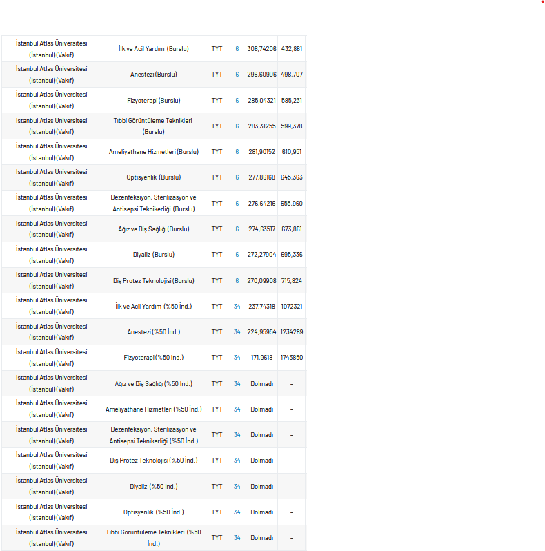 İstanbul Atlas Üniversitesi 2 yıllık taban puanları 2021, yüzdelik dilimleri ve kontenjan sayıları kaçtır?