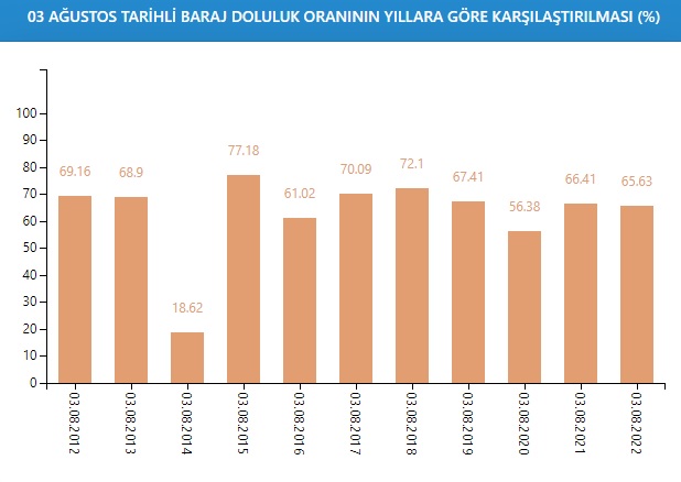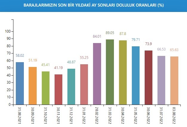 2020 yılının son aylarıyla 2021 yılının ilk aylarında İstanbul barajlarındaki doluluk oranı yüzde 20’nin altına düşmüş, vatandaşlar bir hayli kaygılanmıştı. Aynı yılın ilerleyen aylarında ise baraj doluluk oranları bir hayli yükselmeye başlamıştı. 3 Ağustos 2022 verilerine bakıldığında İstanbul'da barajların ortalama doluluk oranı yüzde 65.63 olarak açıklandı.