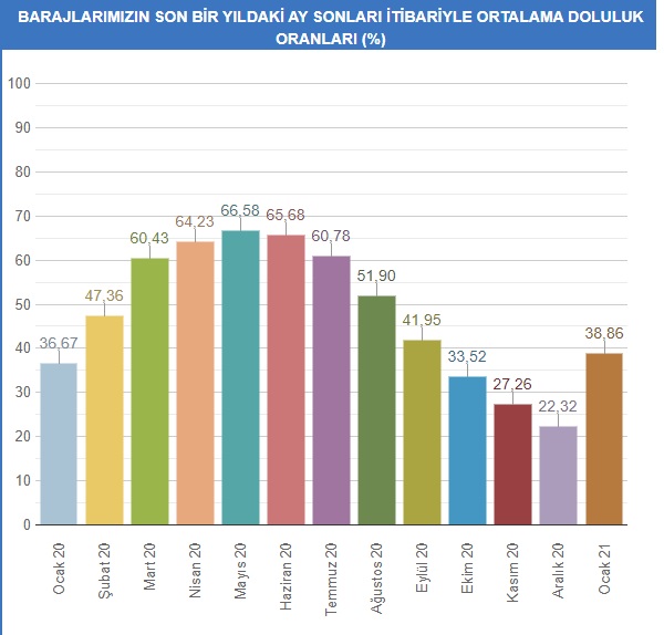 İSKİ verilerine göre 30 Ocak Cumartesi günü İstanbul barajlarının doluluk oranı yüzde 38,86 olarak açıklandı. İstanbul barajlarının halen 61,14'ü boş. Yağışların ise hafta içinde devam etmesi bekleniyor.