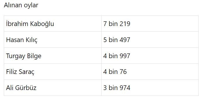 DEM Parti'nin desteklediği eski CHP Milletvekili İbrahim Kaboğlu seçimleri kazandı. Ayrıca seçimlerde bazı CHP'li avukatların eski milletvekili Kaboğlu'na destek verdiği öğrenildi.