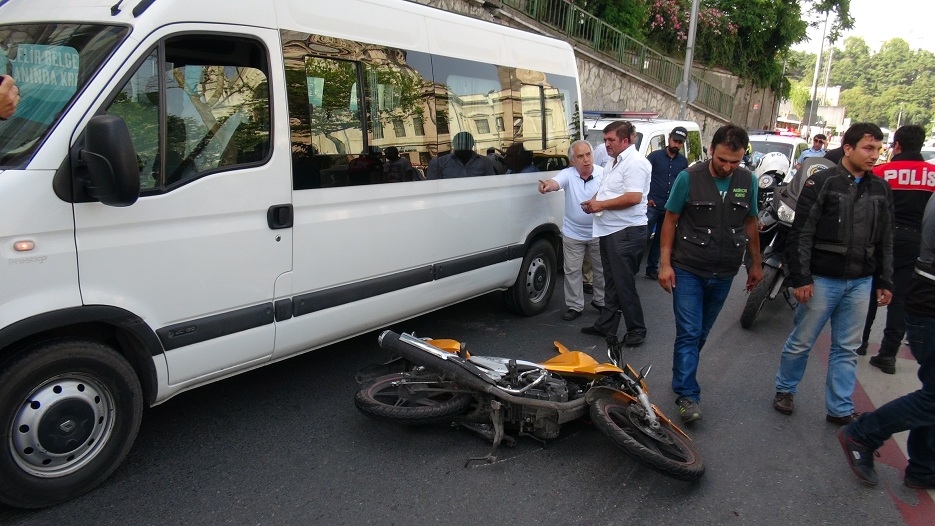 Beyoğlu'nda akşam saatlerinde Dolmabahçe Bezm-i Alem Camii karşısında Karaköy yönünde Yasin Ekici'nin kullandığı motosiklet, kontrolden çıkarak aynı yönde seyreden bir servis minibüsü ile İstanbul Büyükşehir Belediyesi'ne ait Ferahevler-Kabataş seferini yapan yolcu otobüsüne çarptı.