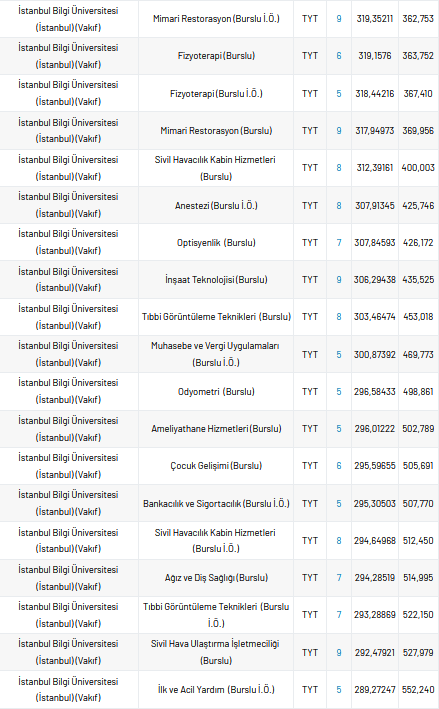 İstanbul Bilgi Üniversitesi 4 yıllık taban puanları 2021, yüzdelik dilimleri ve kontenjan sayıları kaçtır?