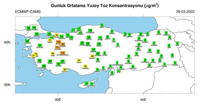 Ökten, "Dikkat! Mart ayının son günü yoğun çöl tozu etkili olacak. Özellikle Ülkenin batısında gökyüzü kahverengi olacak. Astım hastaları tedbirli olmalı. İstanbul için Kırmızı seviye çöl tozu riski var" diye konuştu.