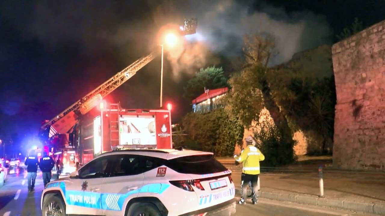 Fatih'te iki katlı metruk binada yangın çıktı. Kısa sürede olay yerine gelen itfaiye ekipleri alev alev yanan binaya müdahale etti. Metruk binadan yükselen alevler cep telefonu kamerasına yansıdı.