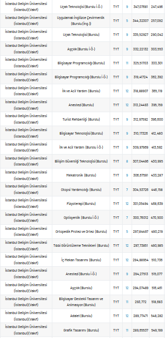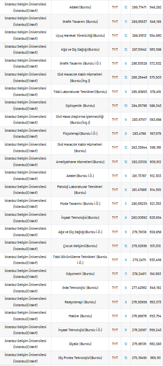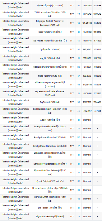 İstanbul Gelişim Üniversitesi 2021 taban puanları ve yüzdelik dilimleri
