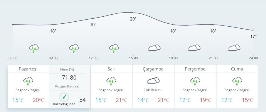 Meteoroloji Genel Müdürlüğü tarafından yapılan son değerlendirmelere göre: Ülkemiz genelinin parçalı ve çok bulutlu, Marmara'nın doğusu, Akdeniz (Antalya merkez ve Hatay hariç), İç Anadolu, Karadeniz, Doğu Anadolu (Bingöl ve Muş hariç) ile Kırklareli'nin kuzey kesimleri, Çanakkale'nin iç kesimleri, Balıkesir, İstanbul, Kütahya, Afyonkarahisar, Mardin, Batman ve Siirt çevrelerinin aralıklı sağanak ve yer yer gök gürültülü sağanak yağışlı geçeceği tahmin ediliyor.