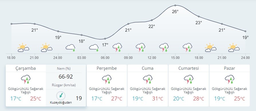 Parçalı bulutlu, İstanbul, Kırklareli, Tekirdağ, Kocaeli, Sakarya ve Yalova çevrelerinin yerel olmak üzere sağanak ve gök gürültülü sağanak yağışlı geçeceği tahmin ediliyor.