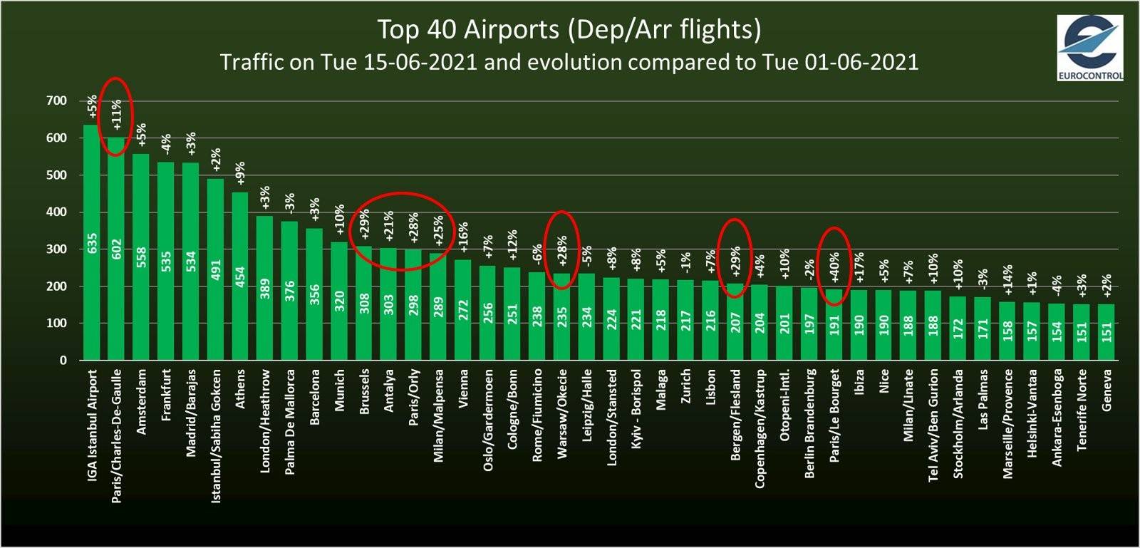 Raporda, Paris, Brüksel, Antalya, Milano, Varşova uçuş trafiğinin 2 hafta boyunca normalin oldukça üzerinde olduğu ve ortalama uçuş ağının yüzde 8 oranında arttığı vurgulandı.