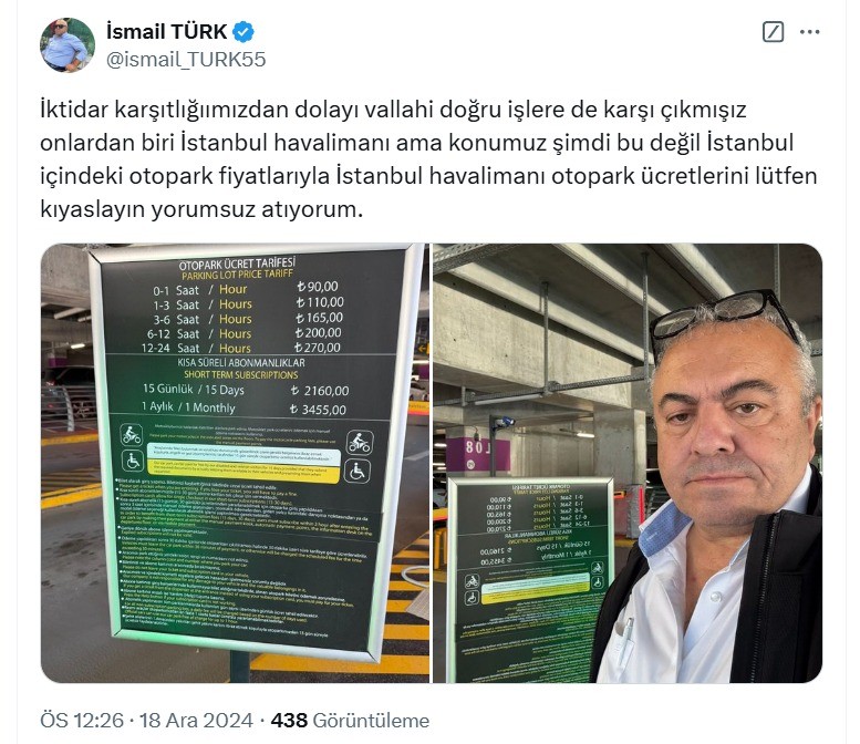 İsmail Türk’ün özeleştirisi ve otopark ücretleri arasındaki bu dikkat çekici fark, sosyal medyada geniş yankı uyandırdı.
