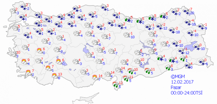 Meteoroloji Genel Müdürlüğünden yapılan son değerlendirmelere göre, ülke genelinin parçalı ve çok bulutlu, Marmara'nın kuzeyi, Güney ve İç Ege, Doğu Karadeniz kıyıları, Burdur, Antalya'nın batısı, Kırıkkale, Yozgat, Kırşehir, Kayseri, Erzurum, Kars, Ardahan, Ordu ve Samsun'un doğu kesimlerinin yağışlı geçeceği tahmin ediliyor. Yağışların, Doğu Anadolu'nun kuzeydoğusunda hafif kar, yağış alan diğer yerlerde aralıklı hafif yağmur ve sağanak şeklinde olması bekleniyor.