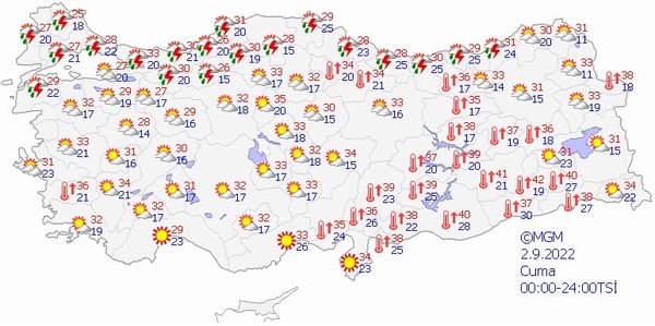 Genel Müdürlükten yapılan açıklamaya göre, öğleden sonra ve akşam saatlerinde yurdun kuzey kesimlerinde görülecek gök gürültülü sağanağın Kastamonu, Çankırı, Çorum ve Amasya çevreleri ile Bolu ve Karabük'ün doğu, Sinop ve Samsun'un iç, Tokat'ın batı kesimlerinde yerel olarak kuvvetli olması bekleniyor..