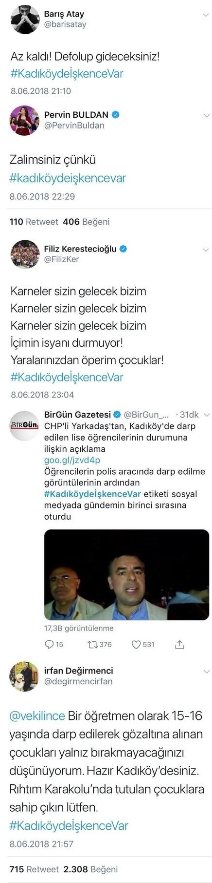Sözde "siyasetçi", "gazeteci" tetikçiler devreye girerek "kadıköydeişkencevar" yalanını körüklediler.