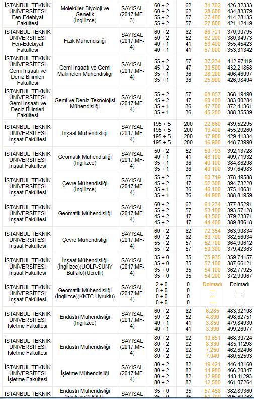 İSTANBUL TEKNİK ÜNİVERSİTESİ 2018 TABAN PUANLARI