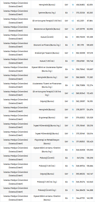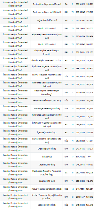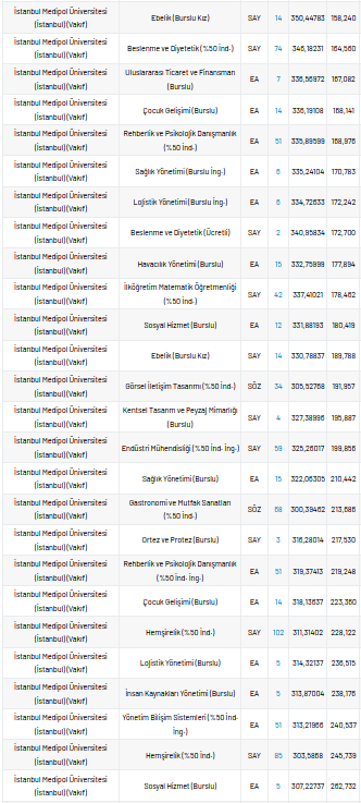 İstanbul Medipol Üniversitesi 2021 taban puanları ve yüzdelik dilimleri