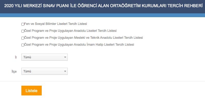 2020 yerel yerleştirme ile öğrenci alan ortaöğretim kurumları tercih robotu için tıklayınız