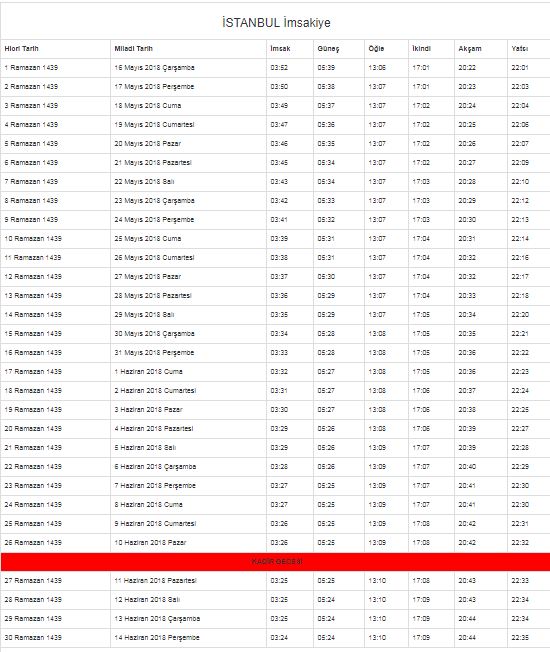 Yüce kitabımız Kur'an-ı Kerim'in indirildiği, duaların,hayır ve hasenatların misyille karşılık bulduğu,seytanların zincire vurulduğu, manevi atmosferin İslam alemini kuşattığı, sofralardaki bereketin her zamankinden fazla olduğu ay Ramazan ayı bu sene 16 Mayıs 2018 Çarşamba günü başladı. Bir ay süre tutulan oruçlar, yapılan ibadetler normal zamanlardan çok daha fazla sevabı ulaştırıyor. Ramazan ayına sayılı günler kala vatandaşlar bu seneki imsakiyi merak eder oldu. Vatandaşların ramazan imsakiyesi merakını diyanet giderdi. Diyanet İşleri Başkanlığı 2018 ramazan imsakiyesini yayınlayarak ilk sahur ve ilk teravih saatlerini duyurdu. 2018 yılı Ramazan ayı imsakiyesi Diyanet İşleri Başkanlığı tarafından belirlenen ezan vakitleri doğrultusunda belli oldu. İşte, hepimizin heyecanla beklediği en hayırlı ay olan Ramazan hakkında merak edilenler ve 2018 Ramazan imsakiyesi. İlk teravih namazı da 15 Mayıs akşamı kılındı. İlk sahur 15 Mayıs'ı 16 Mayıs'a bağlayan gece yapılacak. İlk iftar 16 Mayıs'ta idrak edilecek. 16 Mayıs Çarşamba gününe denk gelen Ramazan'ın ilk günü İstanbul'daki vatandaşlarımız 03:32'de ilk oruçlarına niyet edecekler ve 20:26 saatinde ise oruçlarını açarak iftarlarını eda edecekler. Bu sene iftar vakitleri kısalmayacak, geçen yılda olduğu gibi birer dakika uzayacak. İstanbullular son oruçlarını da 20:48'de açma imkanına sahip olacaklar.