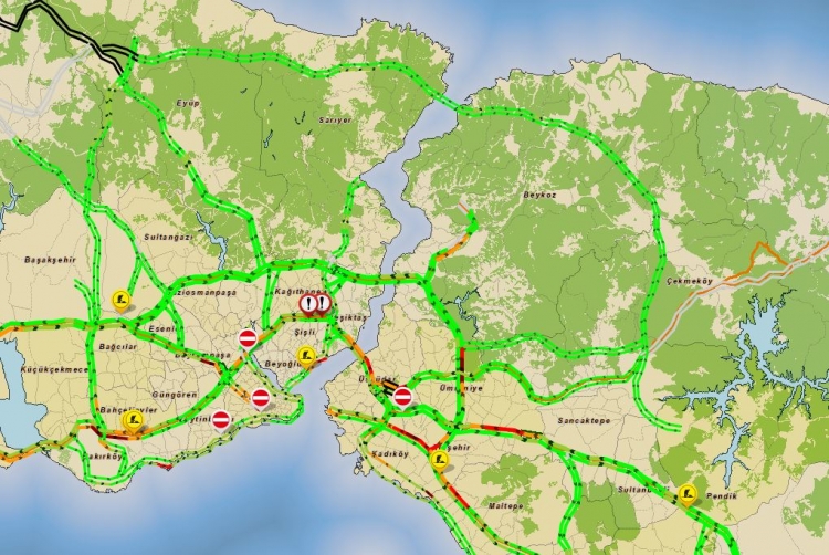 Saat 9.30 itibariyle İstanbul trafiğinin yoğunluk haritası...